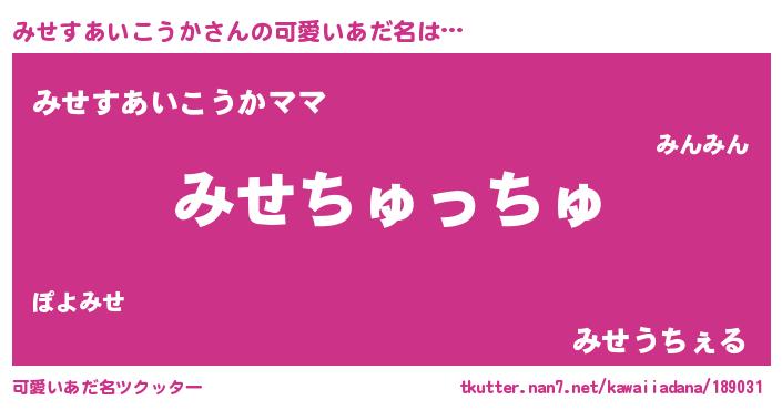 | ヘコむあだ名 | 『みせすあいこうか(小並感)』『みせふぇ~』 |