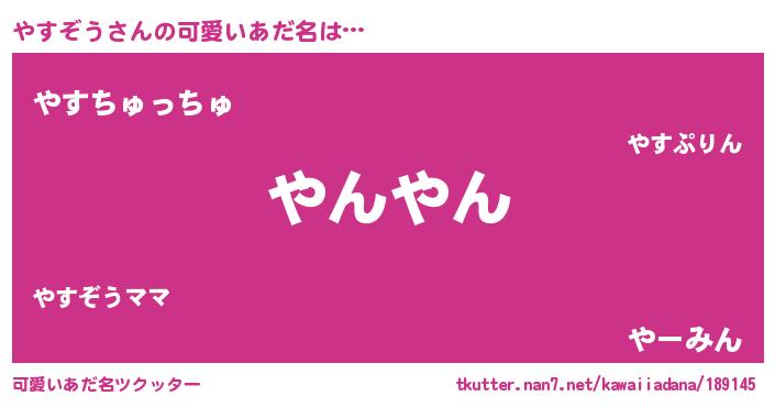 | 女子向けラノベタイトル風あだ名 | 『(仮)やすぞうのやんごとなき事情』 |