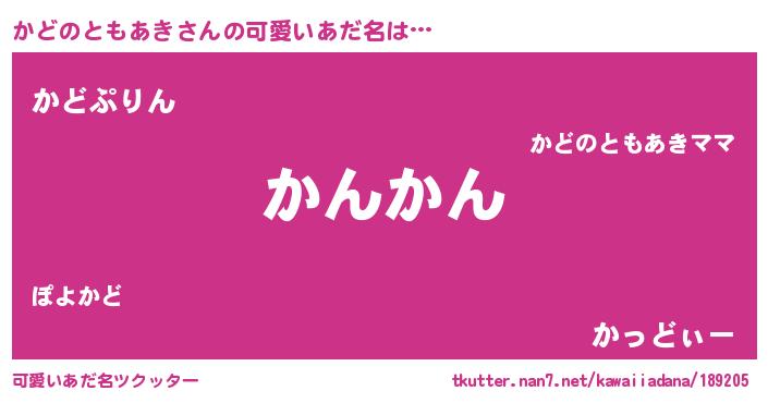 | ヘコむあだ名 | 『かどにゅー』『かどっ子』『豆乳』 |