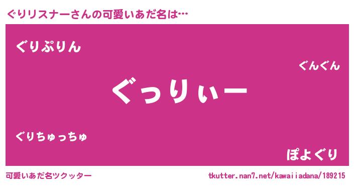 | 男性向けラノベタイトル風あだ名 | 『ぐりリスナーの嫁は女の子じゃないと思った?』 |