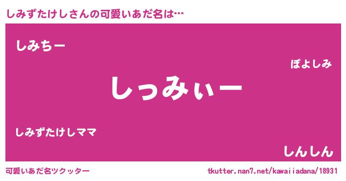 | 意味不明あだ名 | 『とにかく怪しいしみずたけし』 |