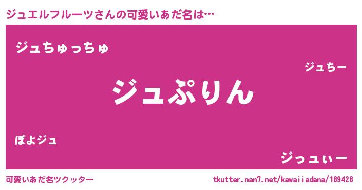 | 男性向けラノベタイトル風あだ名 | 『ジュエルフルーツスレイヤー』 |