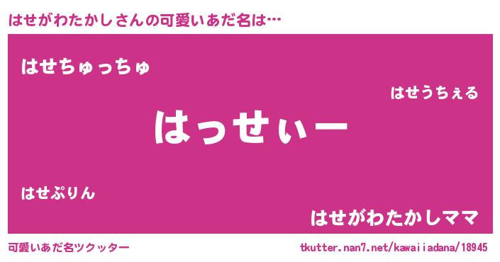 | ヘコむあだ名 | 『はせっぺ』『はせがわたかし(爆)』 |