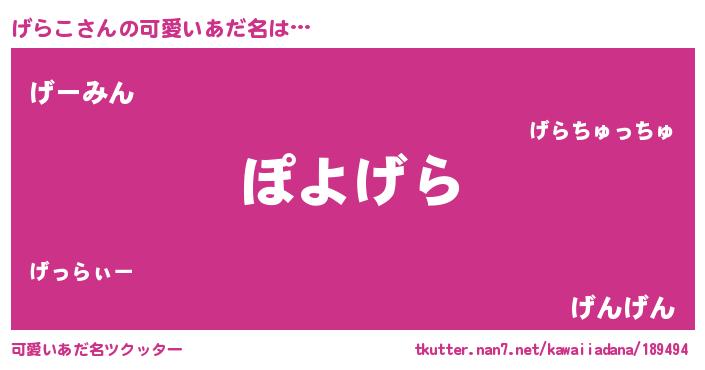 | 欧米人風あだ名 | 『ダレノガレげらこ』『マイケルげらこ』 |