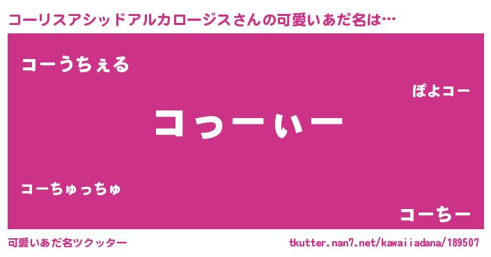 | 意味不明あだ名 | 『とにかく怪しいコーリスアシッドアルカロージス』 |