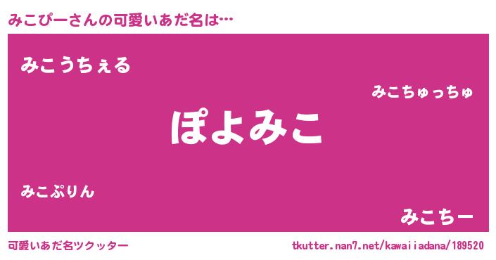 | 意味不明あだ名 | 『住所不定無職みこぴー(4歳)』 |
