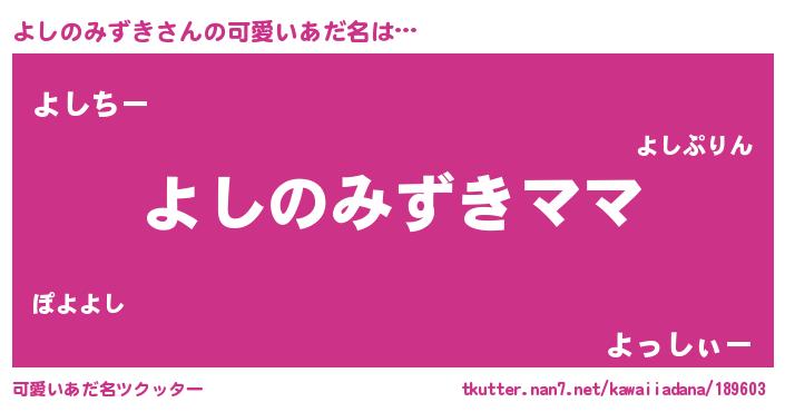 | 意味不明あだ名 | 『永久保存よしのみずき』 |