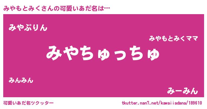 | ヘコむあだ名 | 『みやもとみく(笑)』『みやにゅー』 |