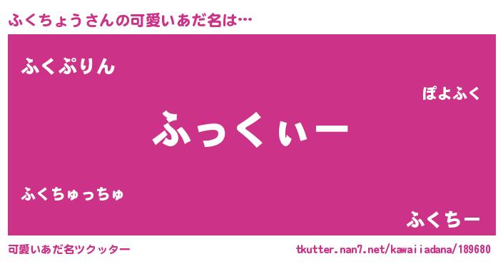 | ヘコむあだ名 | 『ふくを』『つくし』『ふくっふぃ~』 |