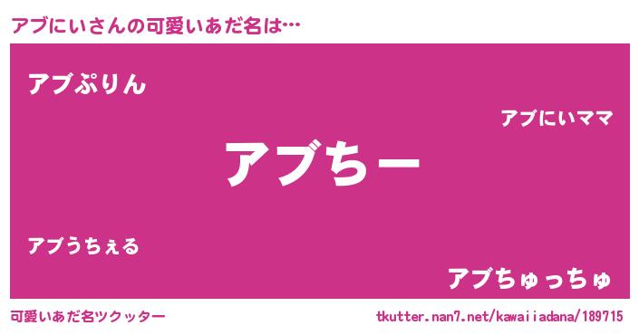 | 意味不明あだ名 | 『アブにいフォーエバー』『自称アブにい』 |