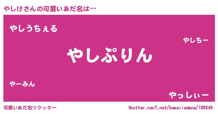 | 料理風あだ名 | 『やしけごはん』『やしけの豆乳スープ』 |