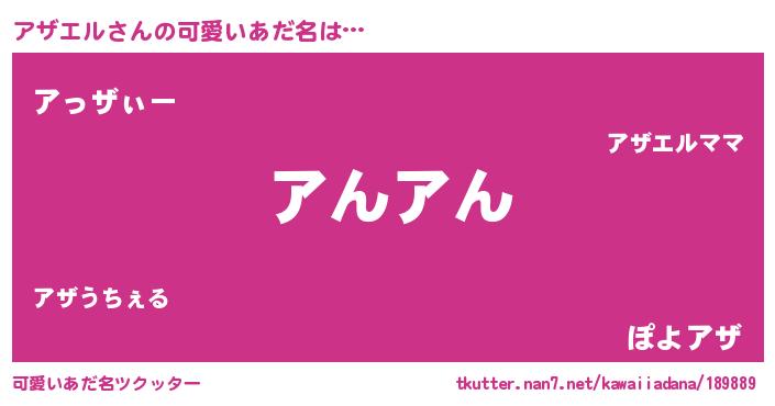 | 意味不明あだ名 | 『ペロリンアザエル』『永久保存アザエル』 |