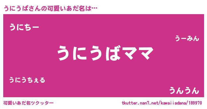 | 意味不明あだ名 | 『永久保存うにうば』『ペロリンうにうば』 |