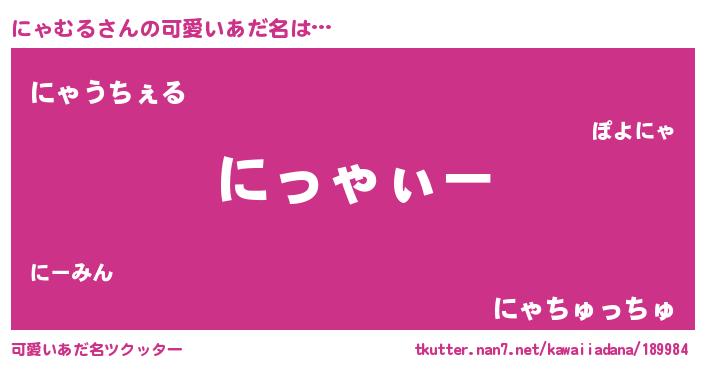 | 男性向けラノベタイトル風あだ名 | 『にゃむるの嫁は女の子じゃないと思った?』 |
