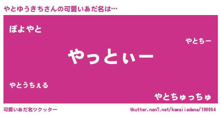 | ポケモン風あだ名 | 『ヒヤトユウキチ』『ヤートイ』 |