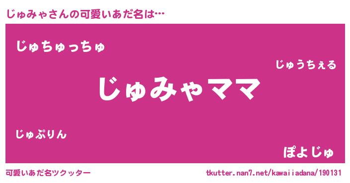| 意味不明あだ名 | 『永久保存じゅみゃ』『自称じゅみゃ』 |