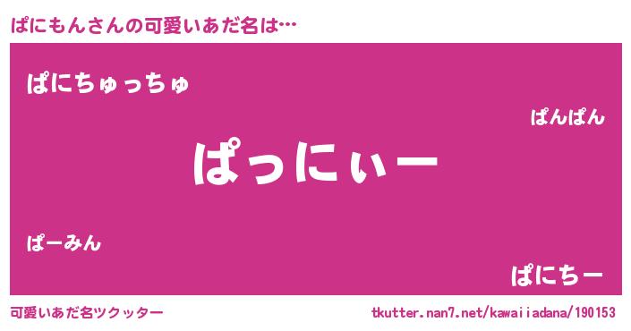 | 男性向けラノベタイトル風あだ名 | 『ダンジョンにぱにもんを求めるのは間違っているだろうか』 |