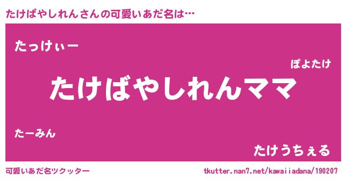 | ヘコむあだ名 | 『たけばやしれん(笑)』『たけお』 |