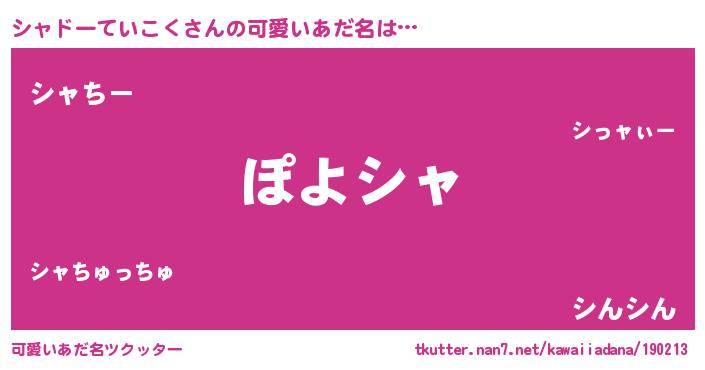 | ポケモン風あだ名 | 『シーャイ』『シャドダネ』 |