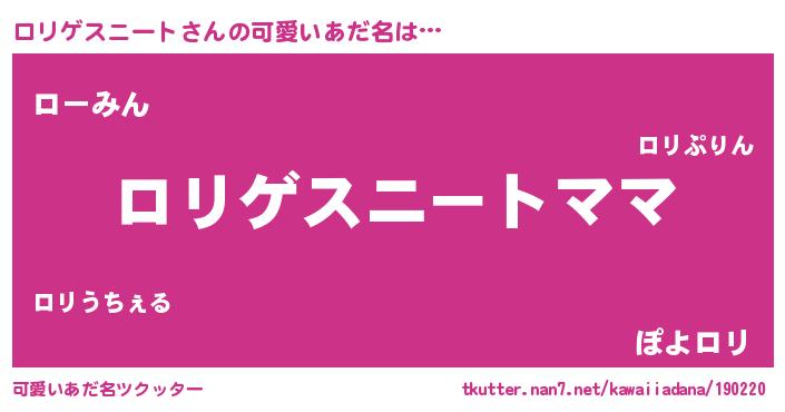 | ヘコむあだ名 | 『ロリゲスニート(笑)』『ロリお』 |