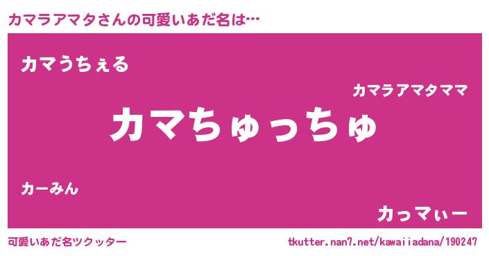 | 女子向けラノベタイトル風あだ名 | 『カマラアマタ恋絵巻』 |