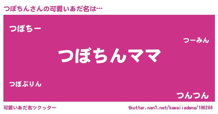 | ヒーロー風カッコイイあだ名 | 『ネオツボチン』『ウルトラつぼちんマン』 |