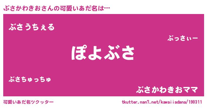 | 意味不明あだ名 | 『住所不定無職ぶさかわきお(14歳)』 |