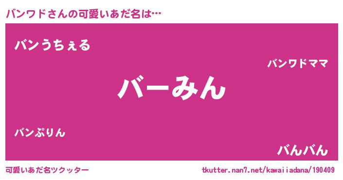 | 恥ずかしいあだ名 | 『バンワドデラックス』『バンちん』 |