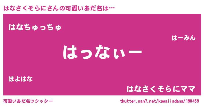 | 男性向けラノベタイトル風あだ名 | 『はなさくそらにの嫁は女の子じゃないと思った?』 |