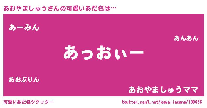 | 男性向けラノベタイトル風あだ名 | 『あおやましゅうに滅ぼされるだけの簡単なお仕事です』 |
