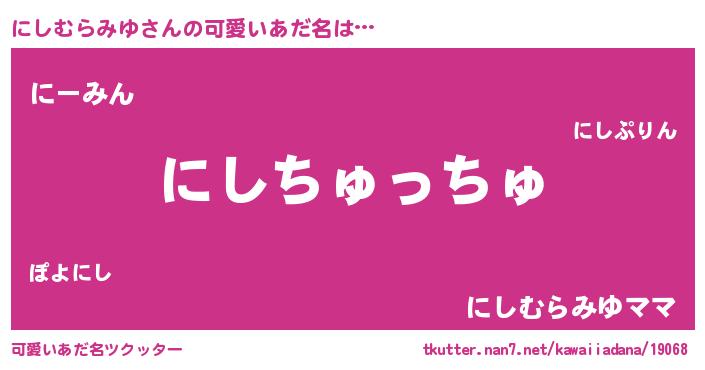 | ヘコむあだ名 | 『にしむらみゆ(小並感)』『レバニラ』 |