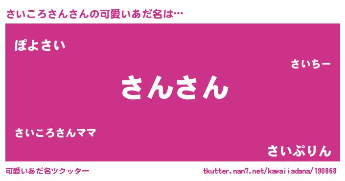 | 恥ずかしいあだ名 | 『プリティーさいころさん』『さいっちょ』 |