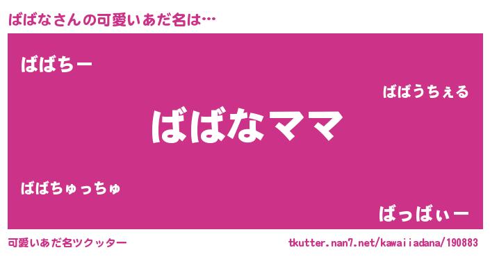 | ヒーロー風カッコイイあだ名 | 『ネオババナ』『ウルトラばばなマン』 |