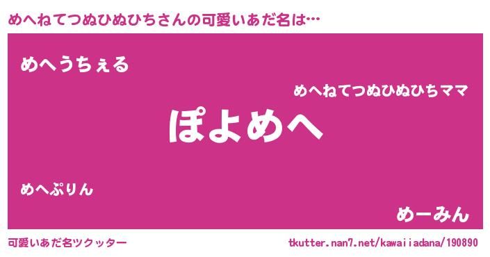 ヘコむあだ名 | 『めへねてつぬひぬひち(爆)』『めへっちょ』 |