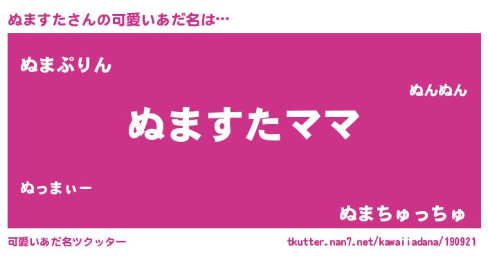 | 男性向けラノベタイトル風あだ名 | 『ぬますたという概念が存在しない退屈な世界 』 |