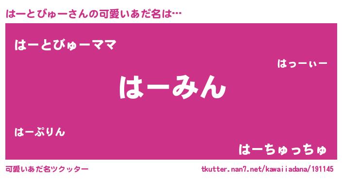 | 男性向けラノベタイトル風あだ名 | 『うちのはーとびゅーが世界を掌握している!』 |