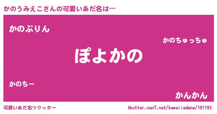 | 恥ずかしいあだ名 | 『プリティーかのうみえこ』『かのっちょ』 |