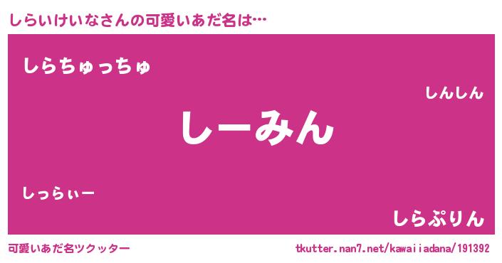 | 欧米人風あだ名 | 『しらいけいな・ステッグマイヤー』 |
