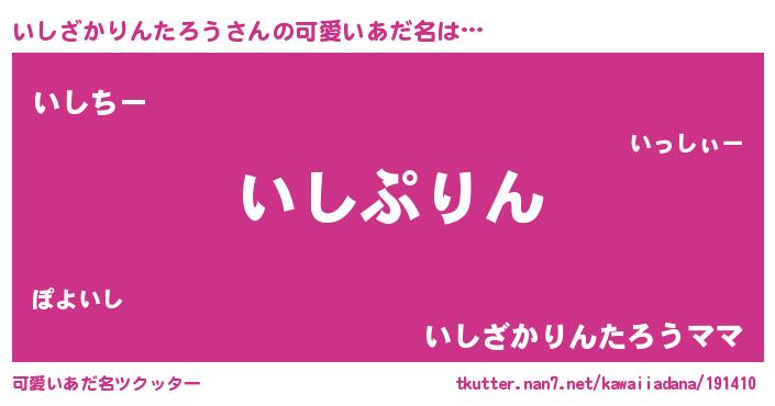 | 男性向けラノベタイトル風あだ名 | 『転生したらいしざかりんたろうだった件』 |