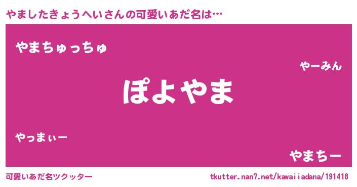 | 意味不明あだ名 | 『住所不定無職やましたきょうへい(62歳)』 |