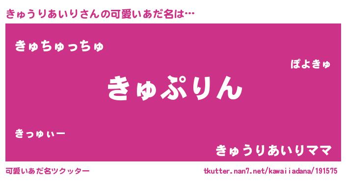 | ヘコむあだ名 | 『きゅうりあいり(笑)』『きゅお』 |