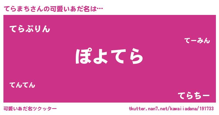 | 恥ずかしいあだ名 | 『てらっちょ』『プリティーてらまち』 |