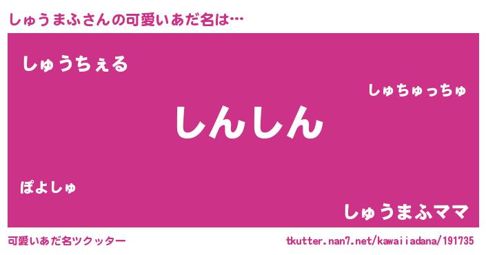 | ヘコむあだ名 | 『しゅにゅー』『しゅうまふ(小並感)』 |