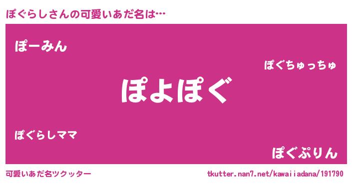 | ヘコむあだ名 | 『ぽぐらし(震え声)』『豆乳』 |