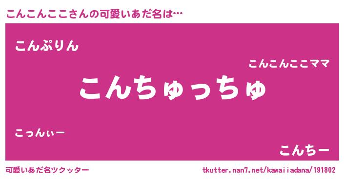 | ヒーロー風カッコイイあだ名 | 『愛の使者こんこんここ』『黄金騎士コン』 |