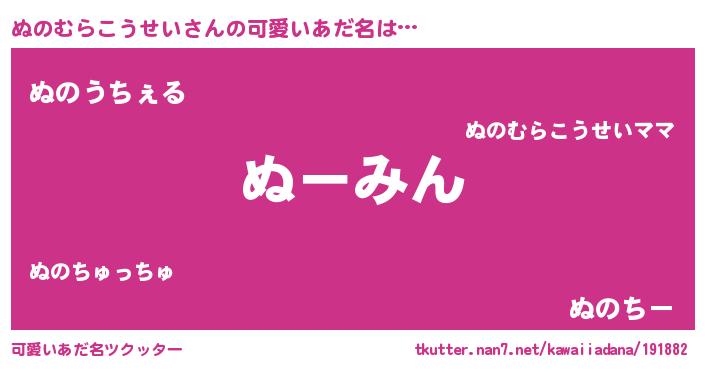 | 意味不明あだ名 | 『自称ぬのむらこうせい』 |