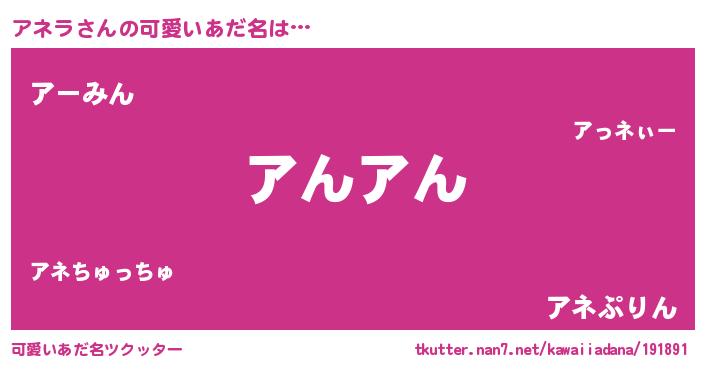 | 恥ずかしいあだ名 | 『プリティーアネラ』『アネリンリン』 |