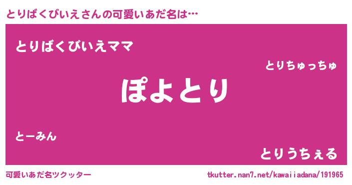 | 男性向けラノベタイトル風あだ名 | 『魔弾の王ととりばくびいえ』 |
