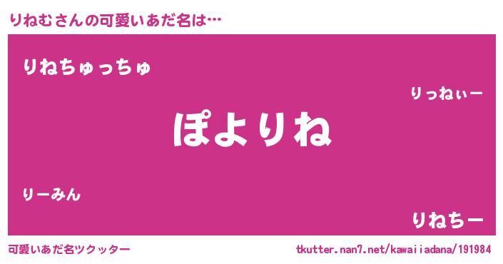 | ヘコむあだ名 | 『なまこ酢』『りねお』『りねもー』 |