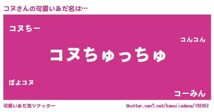 | 女子向けラノベタイトル風あだ名 | 『コヌ夫妻のなれそめ』『コヌ伯爵の花嫁』 |